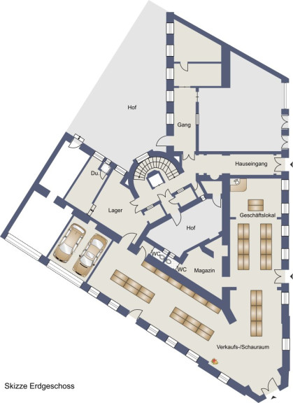 Zum Verkauf steht eine Geschäftsfläche mit hohen Gewölben weitläufigen Grundriss gesamt (ca. 240 m²) und Garagenbox ca. 23 m² für 2 PKW. Kaufpreis gesamt € 920.000,- inkl. Garagenbox .