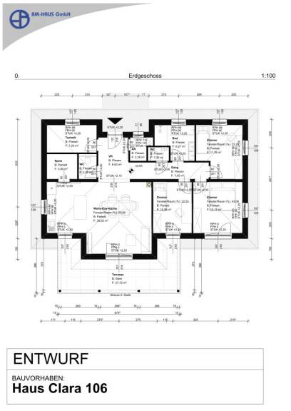 Im Expose finden Sie einen Grundrissvorschlag. z. B. Bungalow 106 - Schlüsselfertig mit Grundstück um € 560.057,--