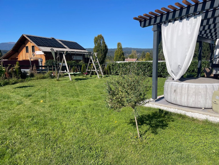 Um das Haus befindet sich ein schön angelegter Garten mit verschiedensten Pflanzen und Bäumen. Ein Gartenhäuschen mit einer gemütlichen Aussichtsterrasse dient im Sommer als Wohnzimmer im Freien und zum Grillen.