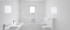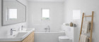 Badezimmer mit Badewanne, Doppelwaschbecken und WC