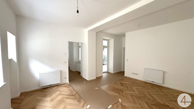 Die stilvoll renovierte Altbauwohnung bietet modernem Wohnkomfort vom Feinsten. Hochwertiger Echtholz-Fischgrätparkett, großzügige Raumhöhe und eine erlesene Ausstattung zeichnen diese Wohnung aus. Zwei ruhige hofseitige Terrassen, darunter eine großzügige Innenhofterrasse in Ruhelage, bieten seltenen Freiraum mitten in der Stadt. Eine moderne Luftwärmepumpe sorgt für effiziente Wärme, ein Kellerabteil für zusätzlichen Stauraum. Die U1-Station Keplerplatz ist nur wenige Gehminuten entfernt und garantiert beste Anbindung.