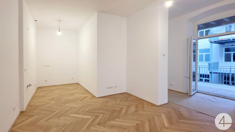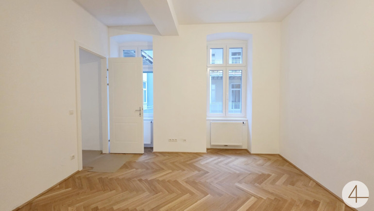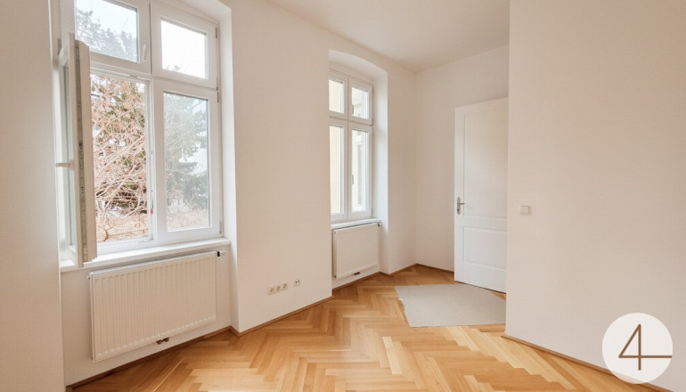 Sanierte Altbauwohnung im 1. Liftstock mit stilvollen Fischgrätböden und charmantem Altbauflair.