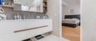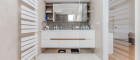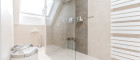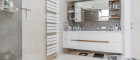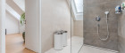 • Großformatige Designfliesen in den Sanitärräumen