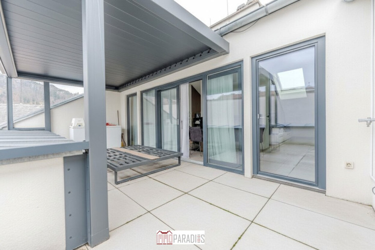 Durch die uneinsehbare Situierung genießen Sie hier ein Höchstmaß an Privatsphäre – ein geschützter Außenbereich über den Dächern von Baden, der vom entspannten Frühstück bis zum stilvollen Abend im Freien vielseitig nutzbar ist.