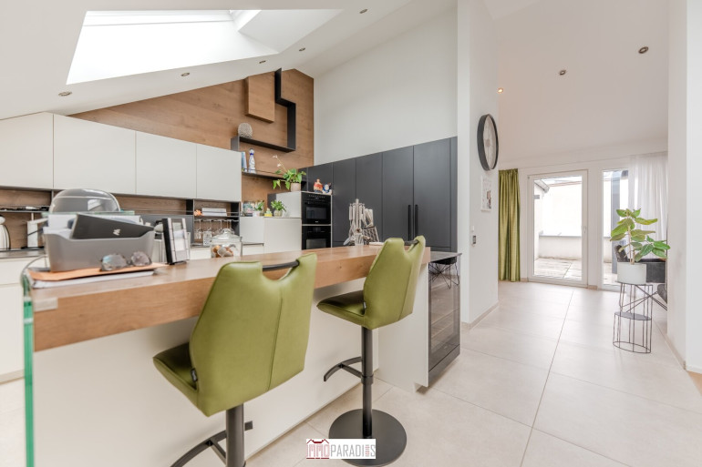 Ein besonderes Highlight dieser Immobilie ist die großzügige Dachterrasse. Ausgestattet mit einer hochwertigen Pergola mit verstellbaren Lamellen lässt sich die Sonneneinstrahlung individuell regulieren. Ein integrierter elektrischer Volant sorgt zusätzlich für Sicht- und Windschutz.