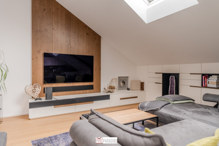 Im Dachgeschoss eines wunderschönen Altbaus wurde im Jahr 2020 diese exklusive Wohnung neu errichtet. Ein Personenlift der Qualitätsmarke KONE bringt Sie komfortabel direkt bis ins Dachgeschoss.