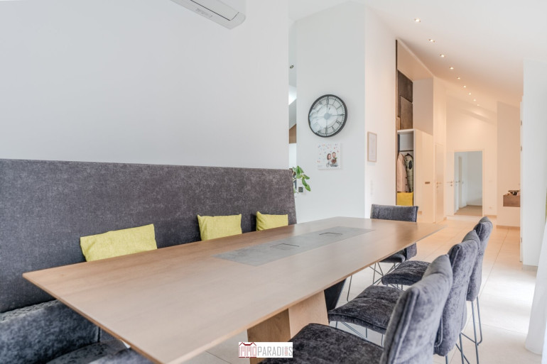 Auf rund 160 m² Grundfläche entfaltet sich ein großzügiges, lichtdurchflutetes Wohnkonzept mit vier Zimmern. Der offene Wohn- und Essbereich mit hochwertiger Designküche bildet das Herzstück der Wohnung und schafft eine repräsentative Atmosphäre für Alltag und Gäste gleichermaßen. Klare Raumstrukturen, großzügige Fensterflächen und zahlreiche maßgefertigte Tischlerlösungen sorgen für ein harmonisches Gesamtbild sowie optimalen Stauraum.