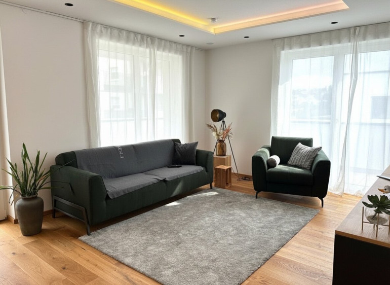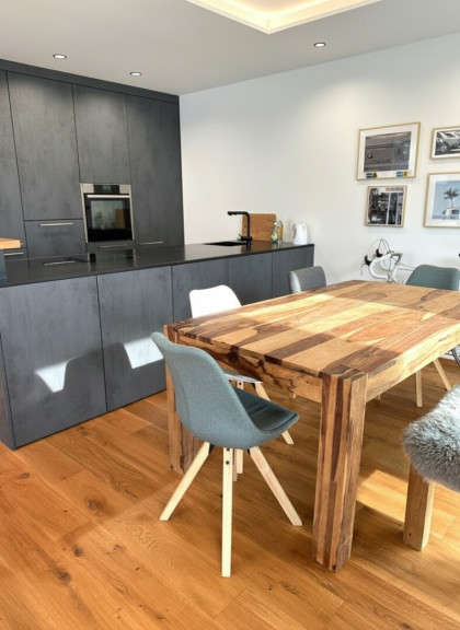 Das Herzstück der Wohnung ist der einladende Wohnbereich, der nahtlos in die hochwertige Einbauküche übergeht. Hier können Sie Ihre Kochkünste entfalten und Ihre Liebsten zu geselligen Abenden einladen. Die Fußbodenheizung sorgt für wohlige Wärme und ein angenehmes Raumklima, egal zu welcher Jahreszeit.