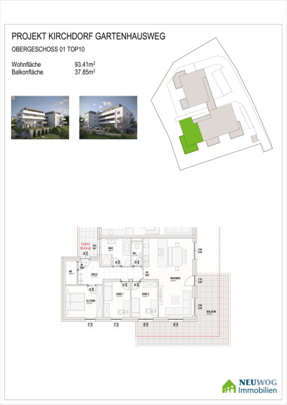Die Immobilie befindet sich am Gartenhausweg in 4560 Kirchdorf an der Krems, einer Stadt in Oberösterreich. Sie liegt in einer ruhigen Gegend, in bester Zentrumslage in einer Sackgasse. Die 18 Wohneinheiten werden, im für die Fa. Neuwog üblichen, gehobenen Standard errichtet. NEUWOG steht für herzliche Betreuung und zufriedene Kunden!