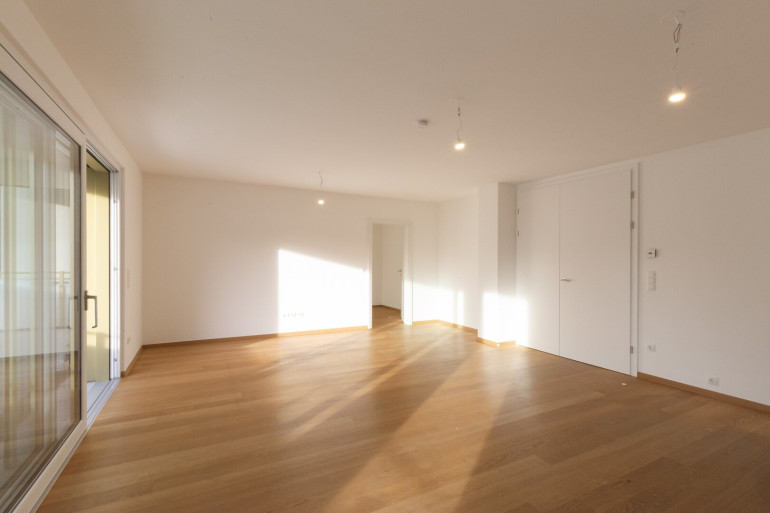 Es steht eine großzügige, westseitig ausgerichtete Terrasse ebenso zur Verfügung wie ein dieser Wohnung zugeordneter Eigengarten, der Teil der Anlage ist.