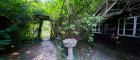 Hinter dem Wohnhaus, inmitten des weitläufigen Gartens, überrascht ein verwunschenes Platzerl: Ein kleines Holzhäuschen, eine Laterne, eine kleine Bank … umgeben von üppigem Grün lädt es zum Verweilen, Entspannen und Träumen ein.