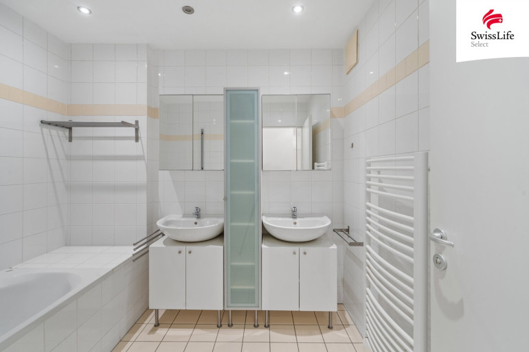 - Großzügiges Badezimmer mit Badewanne und Doppelwaschbecken