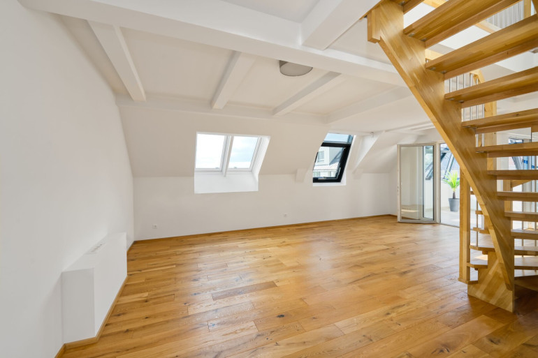 Diese exklusive Dachgeschossmaisonette mit einer Wfl. von ca. 194 m² (inkl. ca.13,5m² Wintergärten) und zusätzlich einer Terrasse (ca. 10,5m²) wurde in einem liebevoll sanierten Stil-Altbau neu errichtet. Die Wohnung unterm Dach besticht durch einen teilbeschatteten Wintergarten, von dem aus man den Sonnenuntergang auf der anderen Seite der Stadt sehen kann - großartiger Ausblick bis zu den beliebten Wiener Hausbergen! Die Terrasse liegt südostseitig in den ruhigen Innenhof ausgerichtet und nahezu uneinsehbar. Die Wohnung eignet sich perfekt zum individuellen Gestalten: teilen Sie entweder Räume ab oder definieren Sie Bereiche zum offenen Wohnen bzw. Arbeiten. Die Eignung für eine Ordination oder Kanzlei mit, 2 Eingängen ist übrigens perfekt!