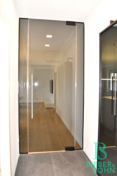 Die im Erdgeschoss gelegene Wohnung, gartenseitig ausgerichtet, besteht aus einem lichtdurchfluteten Wohn-/Esszimmer mit High-End-Design-Küche, einem ruhigen Schlafzimmer, einem extravaganten Wohlfühl-Duschbad mit WC, sowie dem ansprechenden Entrée.