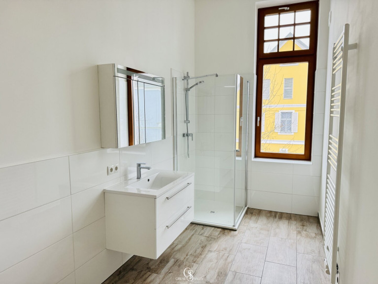 Die Wohnung wurde im Zuge der Gesamtsanierung der Villa komplett erneuert – inklusive neuer Einbauküche, Böden, Fenster, Heizung, Sanitäranlagen und Elektroinstallationen. Es wurden ausschließlich qualitativ hochwertige Materialien verwendet. Großzügige Fensterflächen sorgen für viel Licht und ein freundliches Wohngefühl.