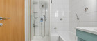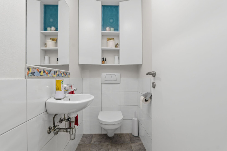 Das helle Badezimmer überzeugt mit Badewanne und separater Dusche, ein zusätzliches Gäste-WC bietet extra Komfort.