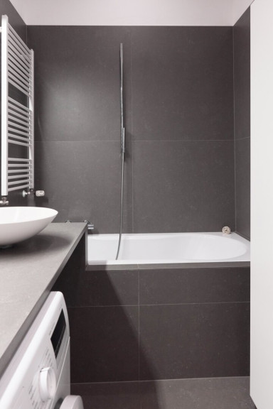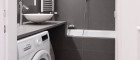Badezimmer mit Badewanne und Anschluss für Waschmaschine