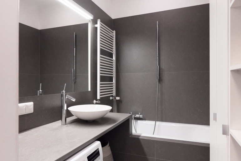 Zwei elegant gestaltete Badezimmer bieten zusätzlichen Komfort: ein großes Badezimmer mit Badewanne sowie ein zweites kleineres Badezimmer mit Walk-in-Dusche und WC.