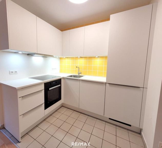 Die Wohnung punktet mit einem großen Wohn-/Schlafraum mit Parkettboden und Küche. Diese wiederum ist vom Feinsten: Miele Geräte (Backrohr, Kochfeld, Dunstabzug, Geschirrspüler, Kühlschrank, TK) und viel Stauraum, sodass auch ambitionierte Köche/innen ihre Freude haben.