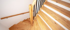 Über einen breiten, eleganten Treppenaufgang mit hochwertigen Dielenböden gelangen Sie ins Obergeschoss, das lichtdurchflutet, großzügig und einladend gestaltet ist. Hier erwarten Sie drei geräumige Schlafzimmer, eines mit direktem Zugang zum großzügigen Balkon, der viel Platz für gemütliche Sitzgelegenheiten, Pflanzen oder entspannte Sonnenstunden bietet. Ergänzt wird das Angebot durch ein weiteres helles Badezimmer mit Glasdusche und ein separates WC.