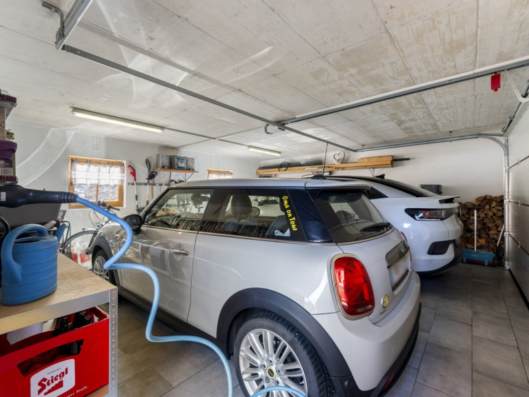 Die Doppelgarage - mit Lademöglichkeit für 2 Elektroautos - Sektionaltor mit 5,5 lfm Breite, sowie drei Stellplätze auf dem Grundstück bieten Ihnen genügend Raum, um Ihre Fahrzeuge sicher und bequem unterzubringen.