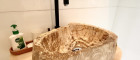 Designbäder mit Walk-in-Duschen, freistehenden Badewannen und hochwertigen Armaturen, hochwertiges Naturstein-Waschbecken im SPA-Bereich