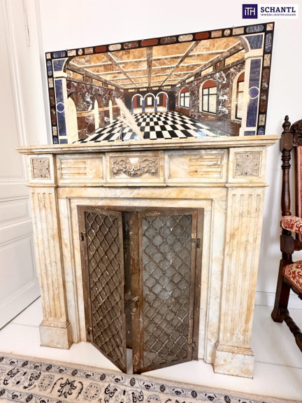 Historische Details wie Gewölbedecke im Souterrain, Kaminumrahmungen aus echtem Marmor, stuckverzierte Fassaden