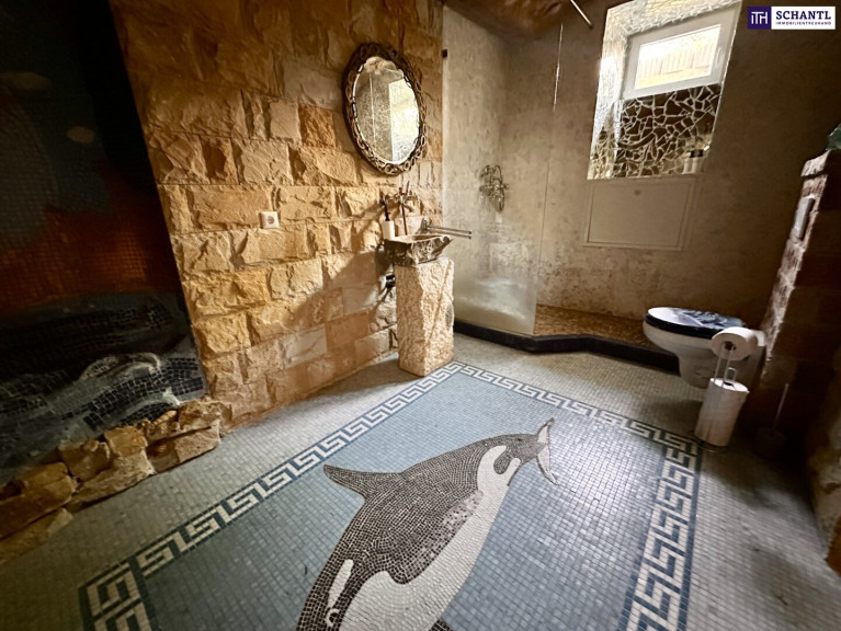 zusätzlich: unterirdischer Wintergarten, Sauna, Badezimmer, Whirlpool und Fitnessräume, Waschraum, Keller, Garten mit separatem Zugang