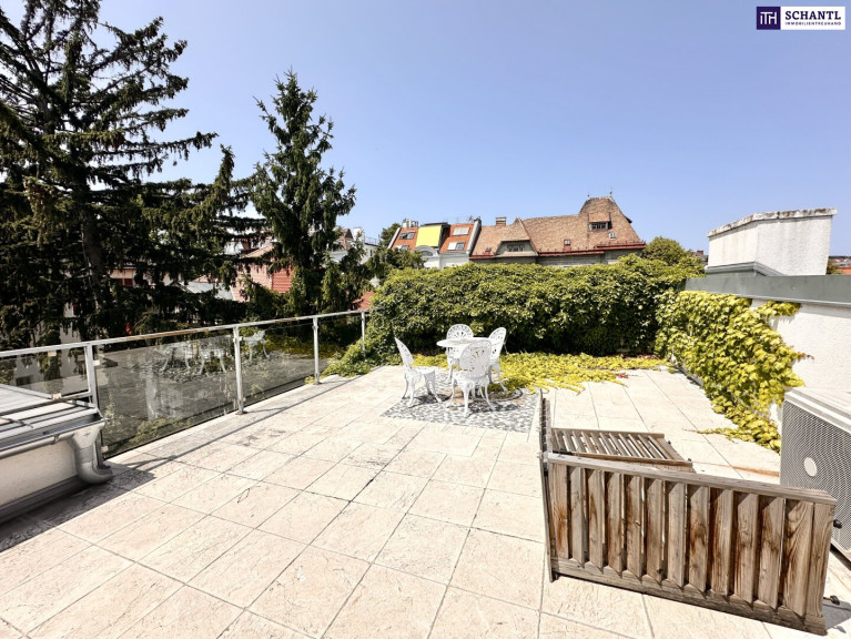Die private Dachterrasse eröffnet einen herrlichen Ausblick über Wien bis hin zum Kahlenberg