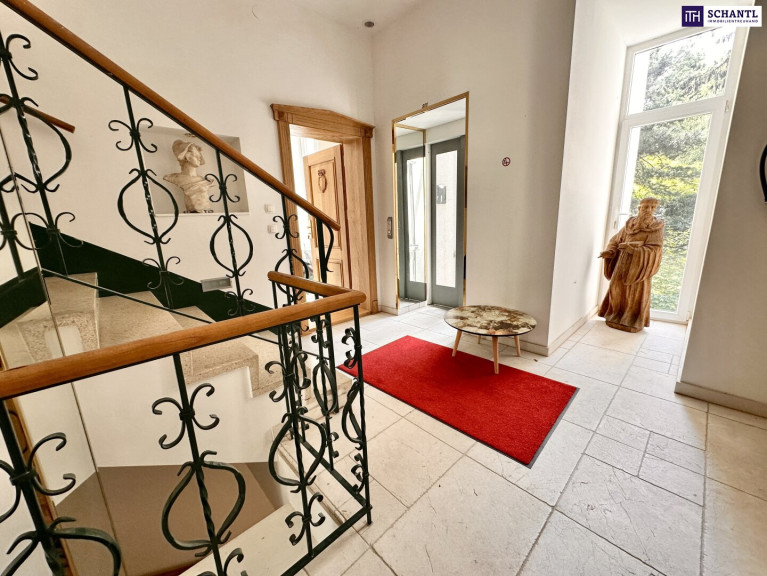 Repräsentatives Entree, prachtvolles Stiegenhaus, Lift modern verglast mit Blick ins Grüne
