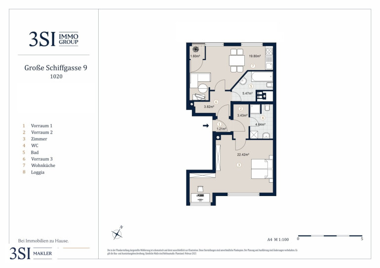 Zum Verkauf gelangt eine stilvoll sanierte 2-Zimmer-Wohnung mit Freifläche & einer Wohnfläche von ca. 61m² im 5.Liftstock.