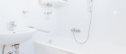 Das moderne Badezimmer ist mit einer Badewanne und einem Spiegelschrank ausgestattet – ideal für entspannte Wohlfühlmomente. Die separate Toilette sorgt für zusätzlichen Komfort.