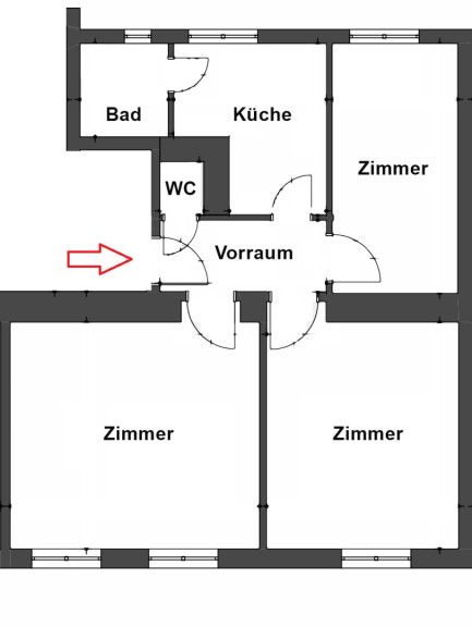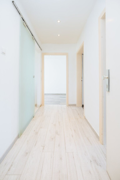 Beim Betreten der Wohnung empfängt Sie ein großzügiger Vorraum, der mit hochwertigen Einbauspots ideal ausgeleuchtet wird. Hier finden Sie ausreichend Platz für eine Garderobe und Stauraum. Alle Zimmer der Wohnung sind separat vom Vorraum aus begehbar, was sie ideal für Familien oder Wohngemeinschaften macht.