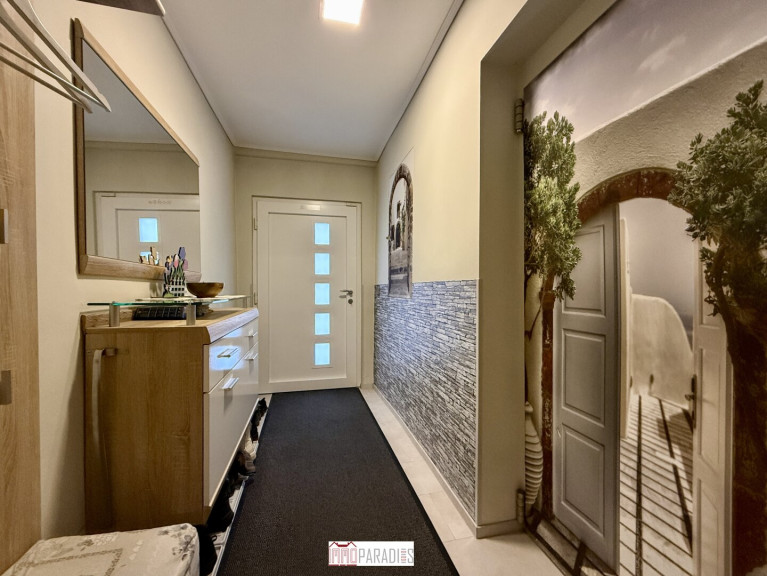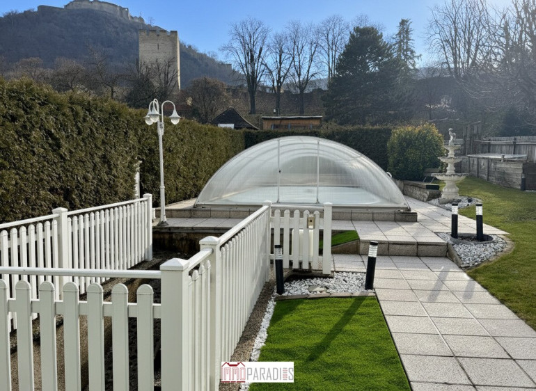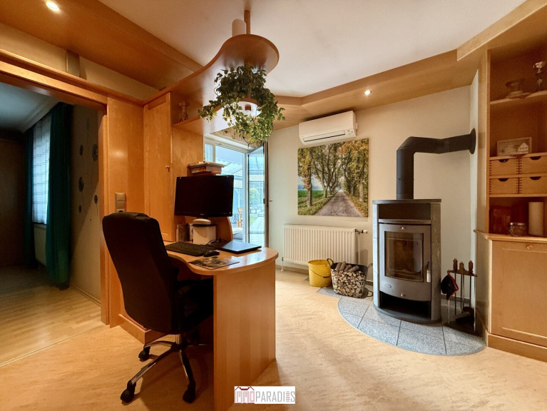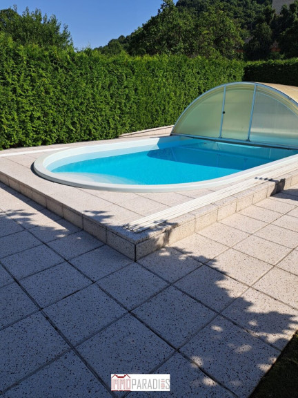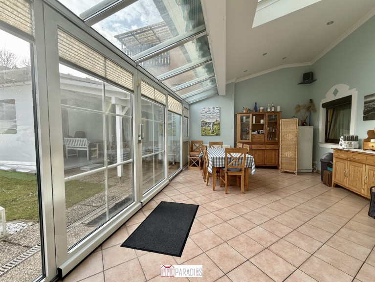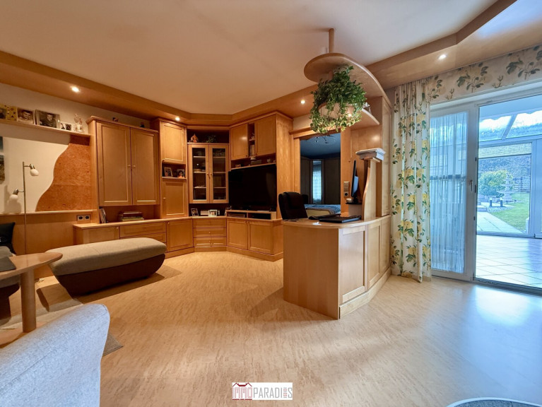 Ein echtes Highlight ist der Swimmingpool mit Überdachung, der den Wohnwert spürbar erhöht und die warme Jahreszeit verlängert. Der vor wenigen Jahren errichtete Wintergarten verbindet Innen- und Außenbereich auf harmonische Weise und fungiert als zusätzlicher Wohnraum mit Weitblick.