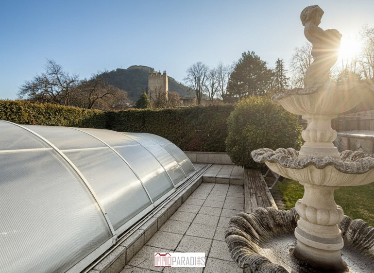 Ob beim Frühstück im Wintergarten, beim Entspannen auf der Terrasse oder beim Schwimmen im Pool: dieser Ausblick ist allgegenwärtig und macht die Liegenschaft zu etwas ganz Besonderem.