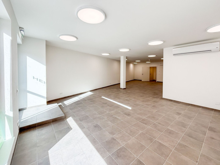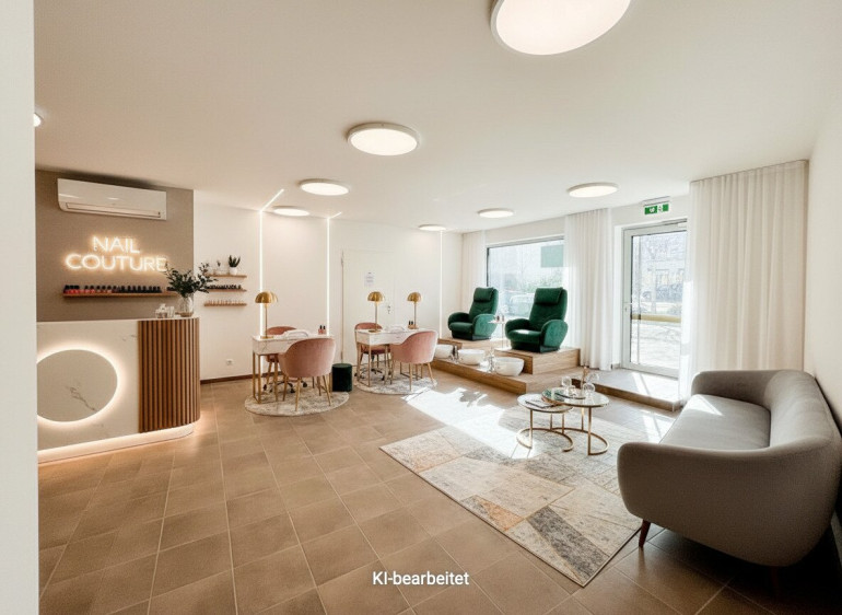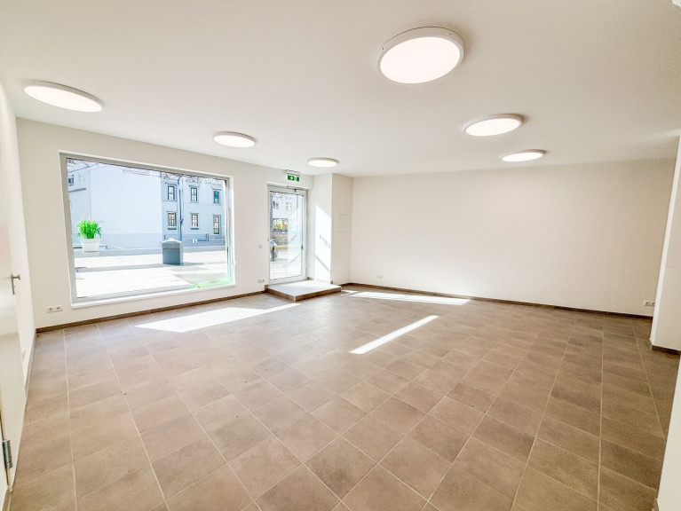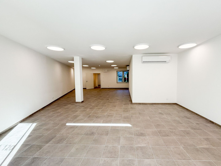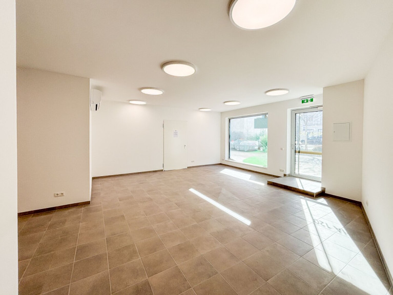 Das Geschäftslokal bietet eine Geschäftsfläche von 110,55 m² sowie ein Lager im Kellergeschoss mit 36,13 m². Die großzügige Portalverglasung mit Sonnenschutzglas sorgt für eine helle Atmosphäre und ausgezeichnete Sichtbarkeit.