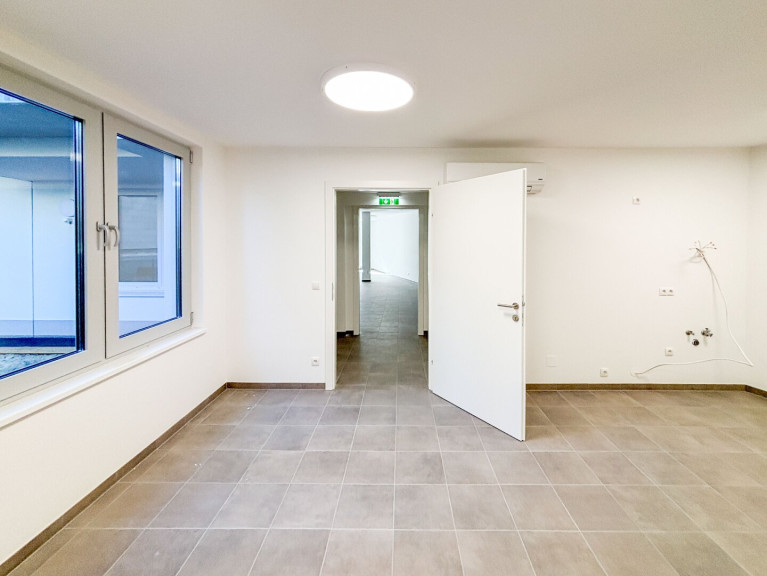 Das Lokal umfasst zwei Räume, sowie einen Abstellraum und ein WC gemäß beiliegendem Plan. Als Bodenbelag wurden hochwertige Marazzi-Fliesen verlegt. Die Beheizung erfolgt über eine Fußbodenheizung, die Kühlung mittels Fan Coils. Ein Teeküchenanschluss ist vorhanden.