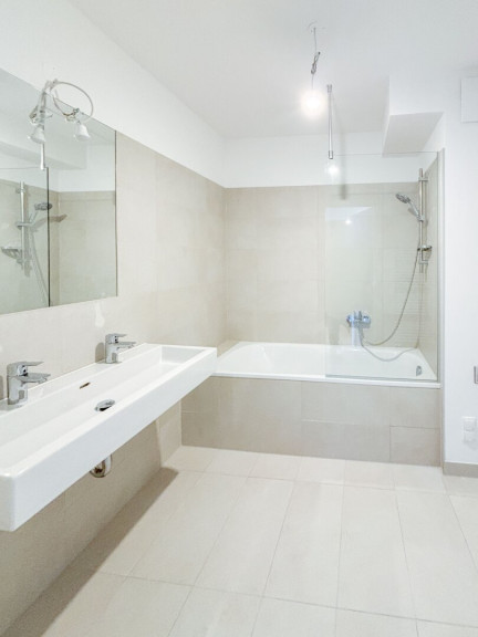 Fliesen, Parkett, Fußbodenheizung, Zentralheizung, Wohnküche / offene Küche, Personenaufzug, Badewanne