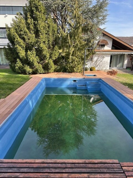 Besonders hervorzuheben ist der großzügige Gartenbereich mit Swimmingpool (ca. 8 x 4 m) sowie einem Poolhaus mit Sauna und Dusche – ein echtes Highlight mit seltenem Freizeitwert in Wien.