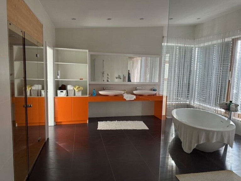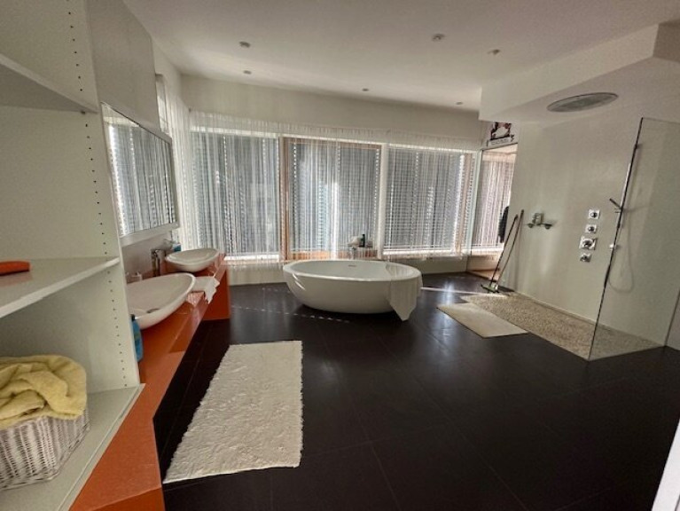 Parkett, Fliesen, Gas, Öl, Fußbodenheizung, Zentralheizung, Einbauküche, Bad mit Fenster, Badewanne, Dusche, Garage, Parkplatz, Sauna, Swimmingpool