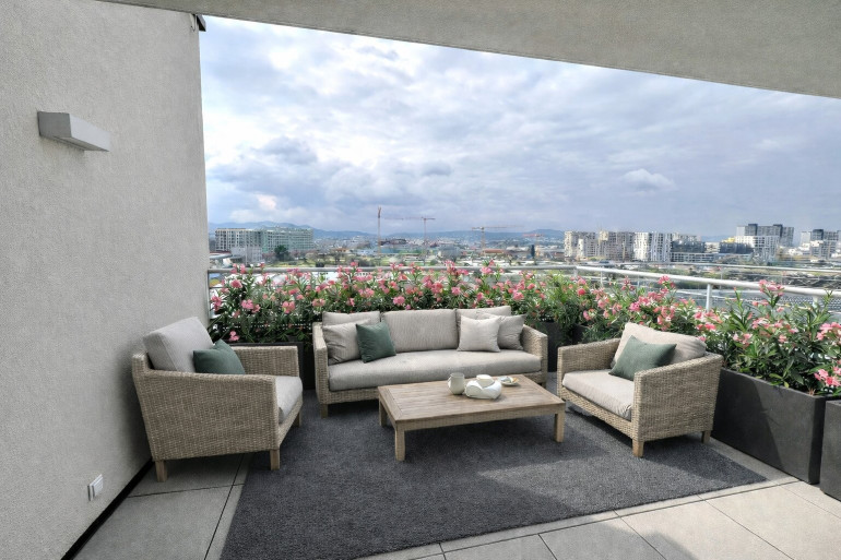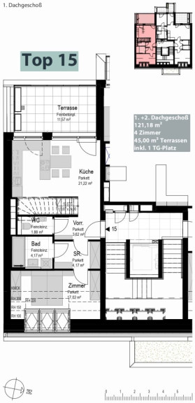 Mit einer Fläche von 121,18 m² auf zwei Ebene und einem durchdachten Grundriss ist diese 4-Zimmer-Wohnung ideal für Familie oder Paare, die das urbane Leben in vollen Zügen genießen möchten. Das Herzstück dieser Immobilie ist der lichtdurchflutete Wohnbereich, der Ihnen dank der großen Fenster und des herrlichen Grünblicks ein Gefühl von Weite und Freiheit vermittelt. Genießen Sie entspannte Stunden auf Ihrer eigenen 4 Terrassen, die zum Verweilen und Entspannen einladen.