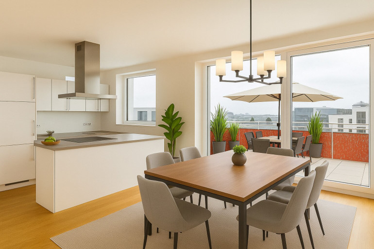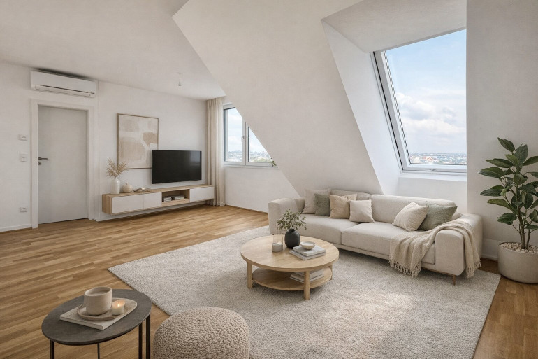 Willkommen in Ihrem neuen Zuhause in 1230 Wien – einer bezaubernden Dachgeschoß-Penthouse-Wohnung, die Ihnen nicht nur modernen Komfort, sondern auch eine hervorragende Lebensqualität bietet. Diese neu gebaute Erstbezugswohnung im Dachgeschoß vereint stilvolles Wohnen mit praktischen Annehmlichkeiten und einer idyllischen Umgebung. Jeder Raum ist mit einer Klimaanlage ausgestattet.