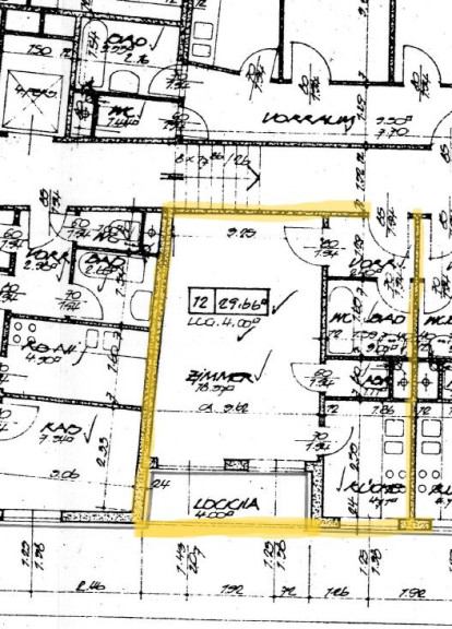 bestehend aus Vorraum, Badezimmer mit WC, Dusche und Waschmaschinenanschluss, Wohn- u. Schlafzimmer inkl. Essbereich mit Durchgang in die Küche und Zugang auf die Loggia - renovierungsbedürftig
