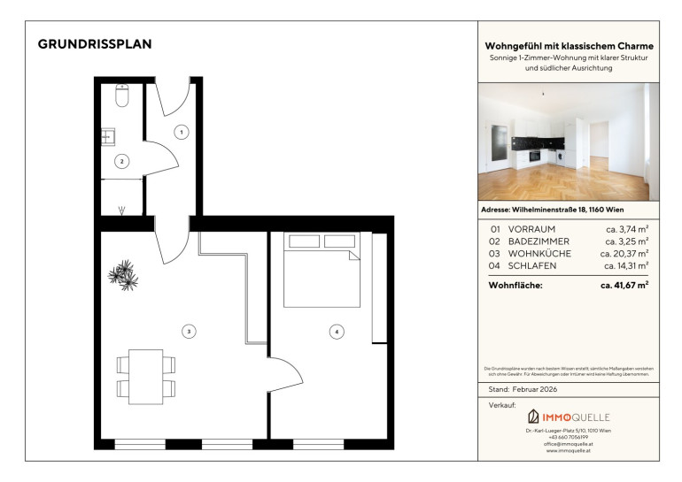 Die Lage? Sie gelangen rasch und bequem in die Wiener Innenstadt – das Schottentor ist in rund 20 Minuten erreichbar, das Stadtzentrum (z. B. Stephansplatz) in etwa 30 Minuten. Auch die Nahversorgung, Schulen, Cafés und Grünflächen befinden sich in unmittelbarer Umgebung und unterstreichen die hohe Wohn- und Lebensqualität dieser Lage. Für entspannte Stunden im Grünen liegt der Wilhelminenberg ganz in der Nähe - mit Spazierwegen, Panoramablick über Wien und viel Platz zum Durchatmen.