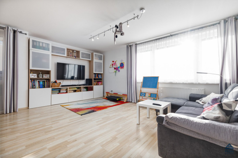 Räumliche Einteilung: Vorraum, WC separat, Abstellraum (mit WM-Anschluss), Zwischenflur, Bad (mit Badwanne), Schlafzimmer, 2 Kinderzimmer, Küche eingerichtet, Wohn-Esszimmer, Balkon; Kellerabteil, Parkplatz