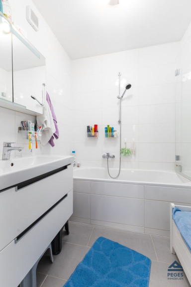 Das Schlafzimmer mit perfektem Schnitt bietet die ideale Schlaf- und Ruheumgebung. Die beiden weiteren Zimmer können als Kinderzimmer oder Büro genutzt werden. Parkettbödenin den Wohnräumen und eine gepflegte Ausstattung (elektrische Jalousien in WZ und SZ, usw.) sorgen neben der angenehm hellen Gestaltung für Wohlfühlambiente. Das Bad ist mit einer Badewanne ausgestattet. Das WC ist separat und verfügt zudem über ein Handwaschbecken. Ein Waschmaschinen-Anschluss befindet sich im praktischen Abstellraum.