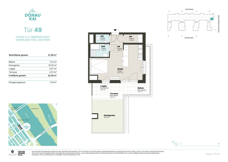 - öffentliche Anbindung: U6 & S-Bahn (Handelskai) sowie auch die Buslinien 5A & 11A