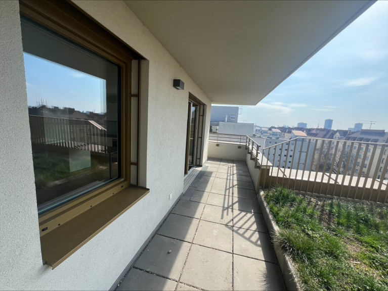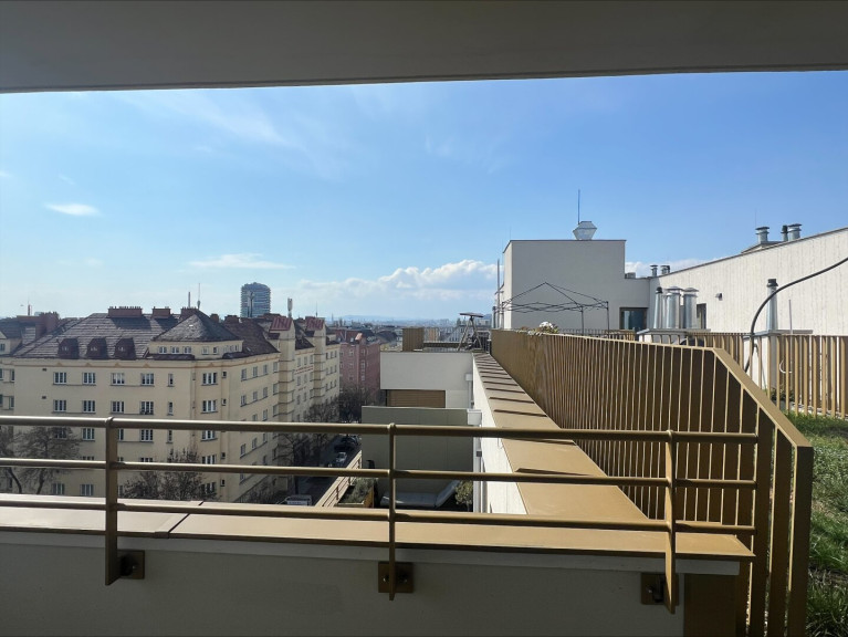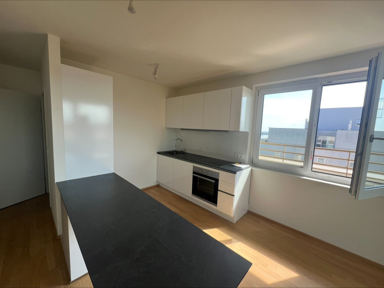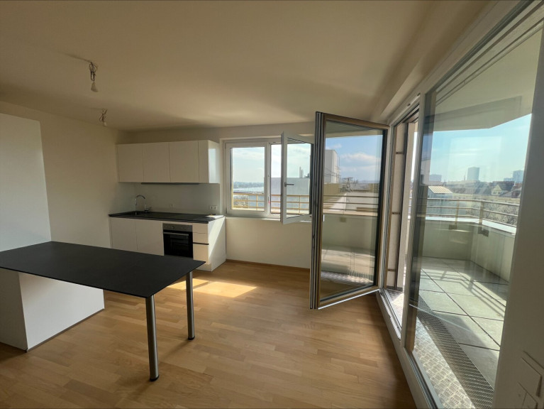 - Wohn-/Schlafraum mit offener Wohnküche (vollausgestatt) & Zugang zur Loggia mit Blick über Wien