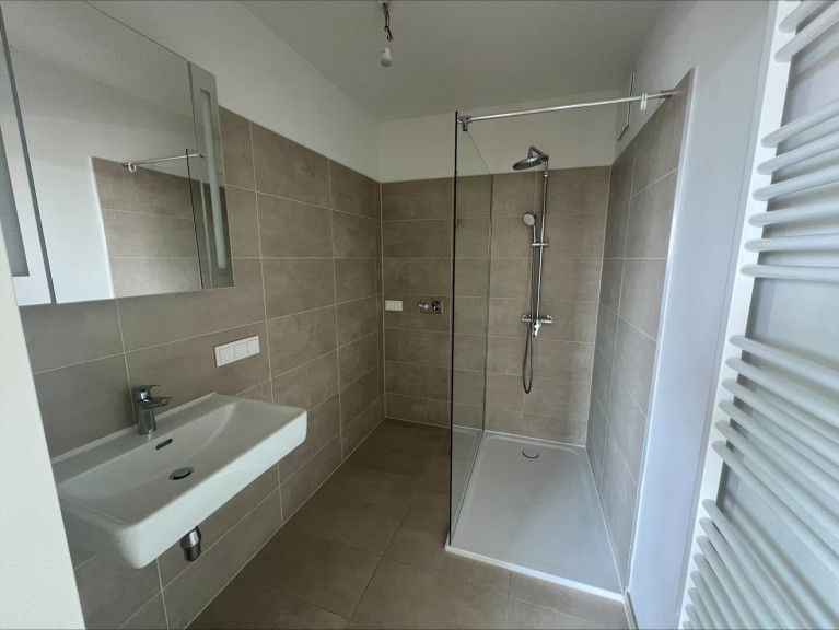 - Badezimmer mit Dusche, Waschmaschinenanschluss & Handtuchheizkörper
