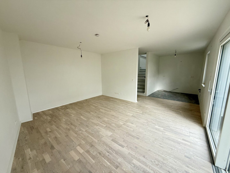 Vorraum mit Garderobe, separates WC, offene Wohnküche mit direktem Zugang zur Terrasse und in den Garten, zusätzliches Zimmer (ideal für Büro oder Gäste).